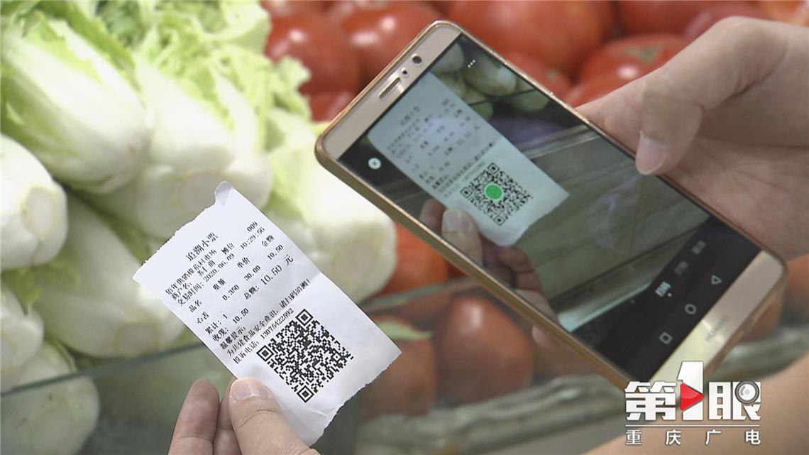 第1眼記者注意到,在農(nóng)貿(mào)市場的每一筆交易,消費者都可獲得具有追溯代碼的小票,掃描二維碼,就能獲取所購農(nóng)產(chǎn)品的供應(yīng)商及其資質(zhì)證明等信息。